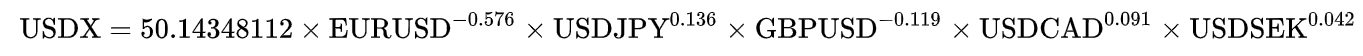 アメリカドルインデックス(DXY)の種類(派生)は、見つけれた数でも、4種類あり、それぞれ計算式も通貨の組み合わせも違う。