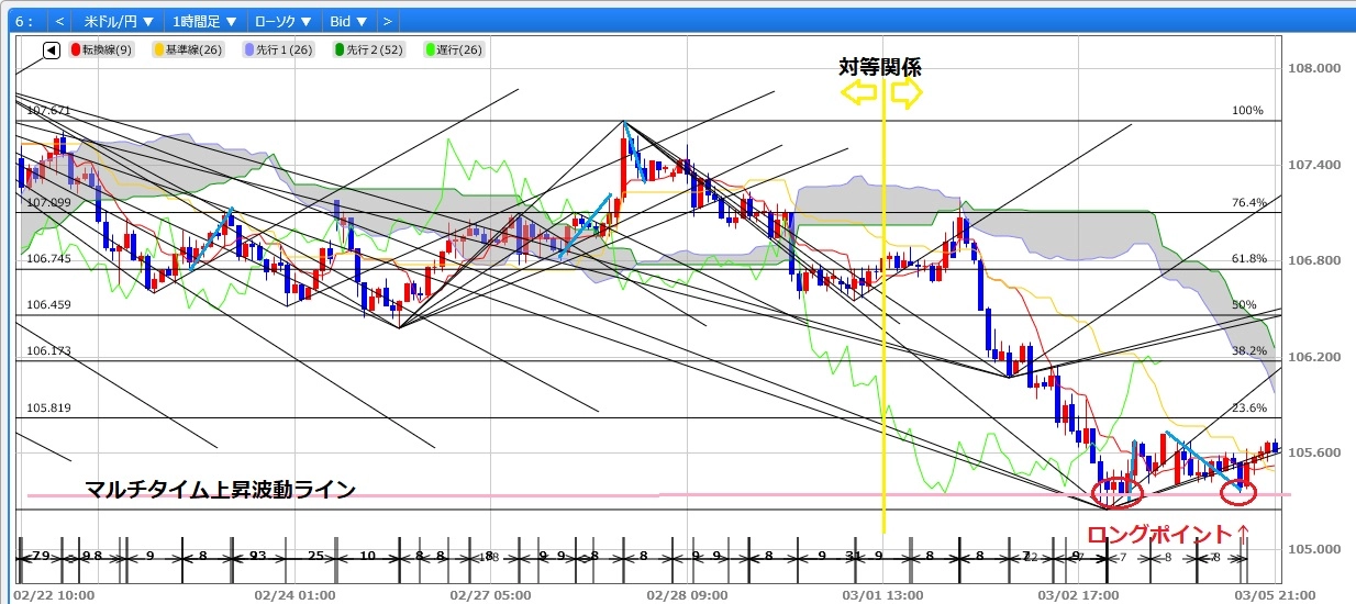 マルチタイムでの上昇波 動に沿う形で上昇し、