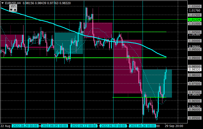 現在のレート0.9830は、先週金曜の戻り高値0.9850にほぼ到達している。