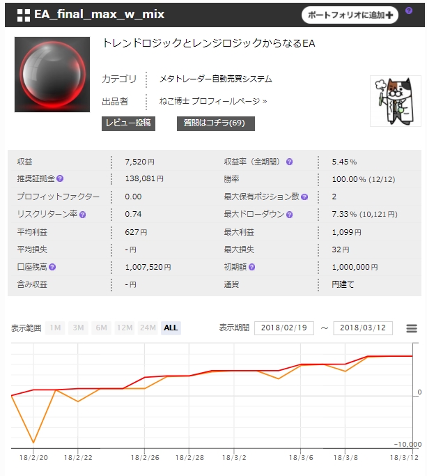 ねこ博士のEAは勝率が高いけれども勝てるところだけエントリーするので取引頻度が少な目のケースが多いので、