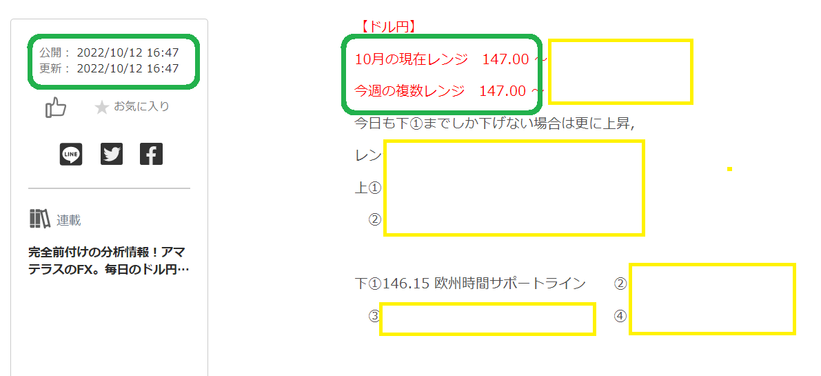 10月13日 ついに10月レンジ上147.00ほぼ到達!【レンジ記事公開中】