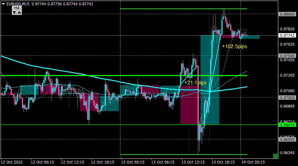昨日は想定通り0.970が意識され、H4の足でH4MAをブレイクしたタイミングでロング。