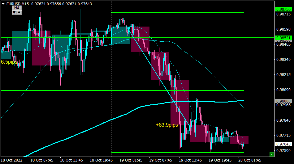 ひとまずの節目は前日安値の0.9757として、このレートでのプライスアクションを見たい。