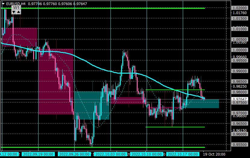 現在のレート0.9750は、先週後半からの上昇波の押し目買いが入ってくる水準。