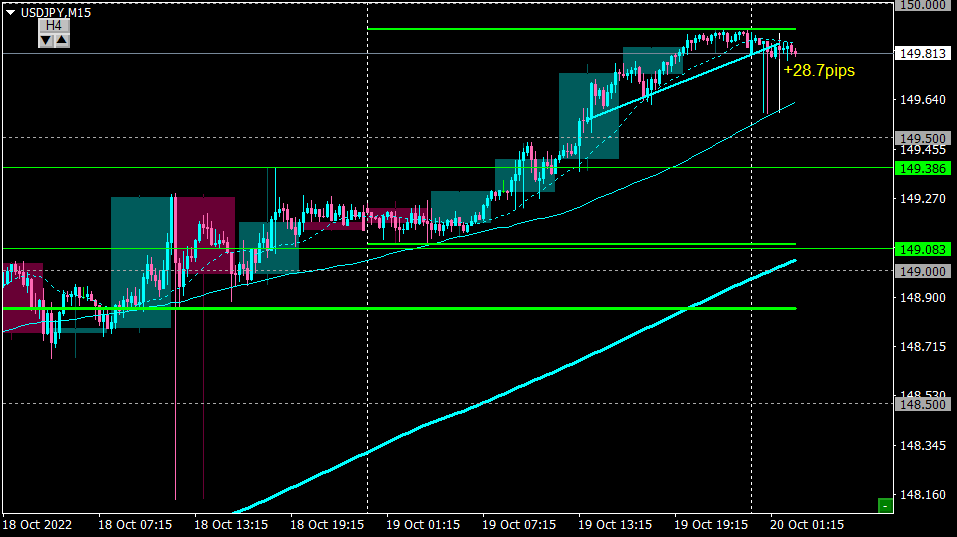 先週高値などの節目も突破したので夜までホールド。+84pips