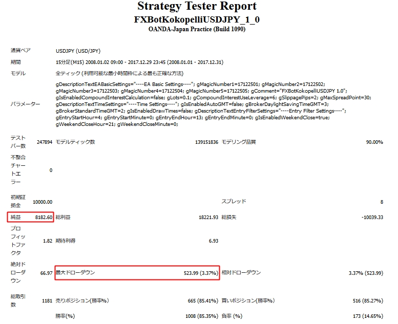 2008.01.01-2017.12.31 0.1ロット固定、スプレッド8にて