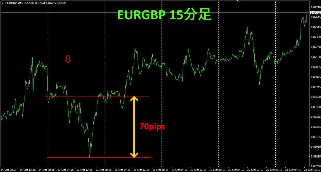 次は、EURGBPの15分足チャートです。