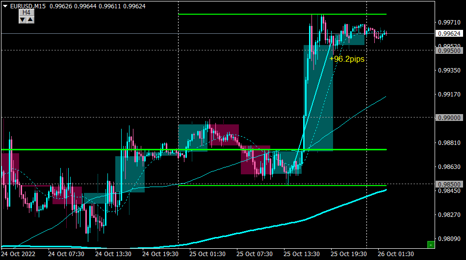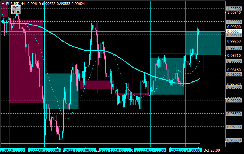 昨日は午前中に先週高値0.9875をH4の足で上抜き上げダウ確定。