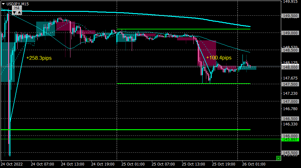 NY時間に下げ始めたところで、前日下降波の戻り売りと見てショート。