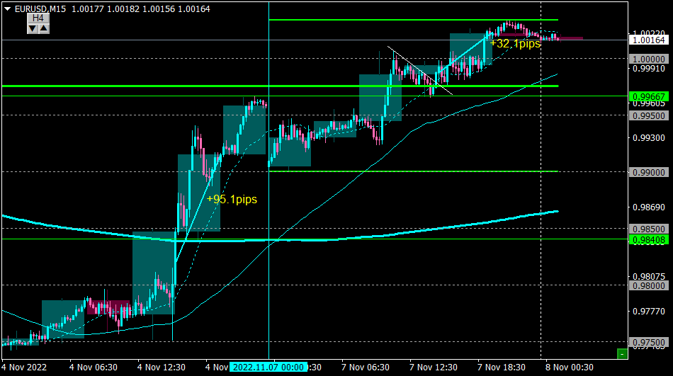 昨日は前日安値を割ったタイミングでショートしたが、思いのほか下がらず損切りになった。-5pips