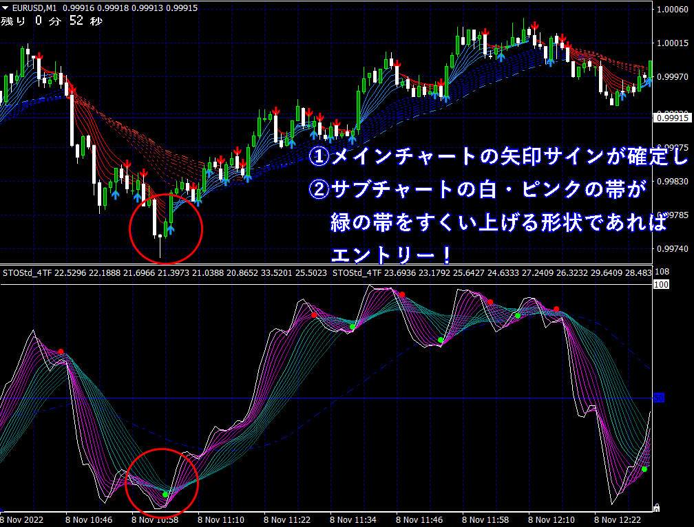 ※ 1分足用インジケーターとして説明しておりますが、当インジケーターは
