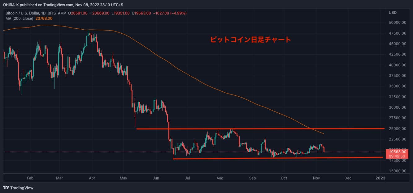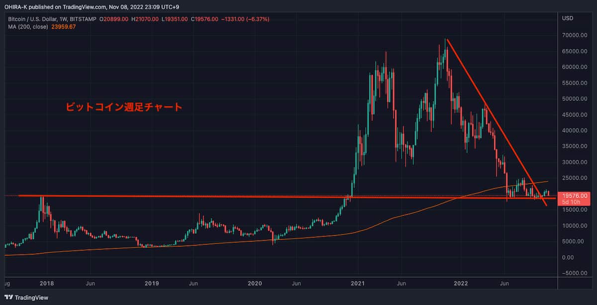 先週イーロン·マスクのTwitter買収を契機に仮想通貨市場全体が大きく高騰したものの、直近で発生したBinanceのCEO、CZ とFTXのCEO、samとの係争が発端となりまた上昇前の価格に戻っています。