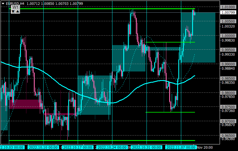 前日高値を抜いたが、レジスタンスと考えていた週足MAまで距離がなかったのでノートレード。