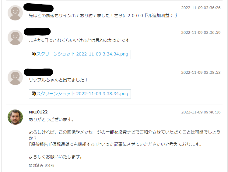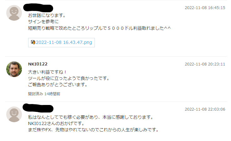 天底名人はどのような通貨ペア、商品、仮想通貨でも稼働するというのが売りの一つですが、実際にご購入いただいた方から、爆益のご報告をいただきました!