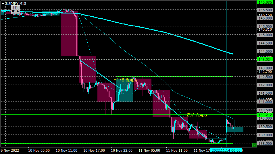 深夜のH4の足完成でイグジット。+297pips