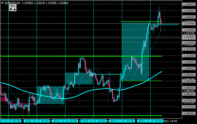 現在は、強く意識されそうな先週高値1.0364の下にあるが、このレートがレジスタンスになるか?