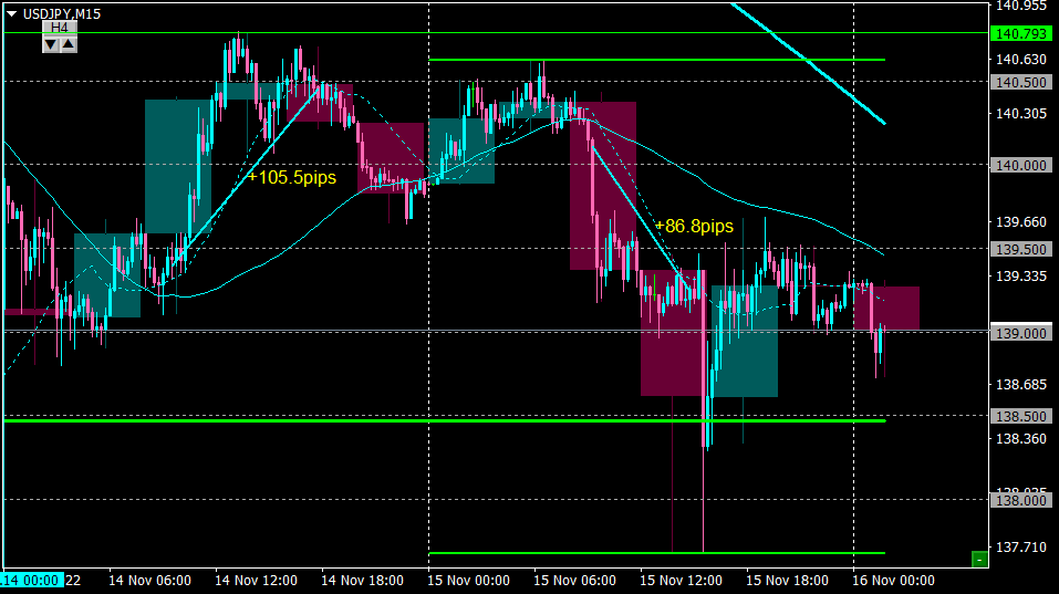139.0付近で下げ渋ってきたのでイグジット。+87pipsほどの利益。