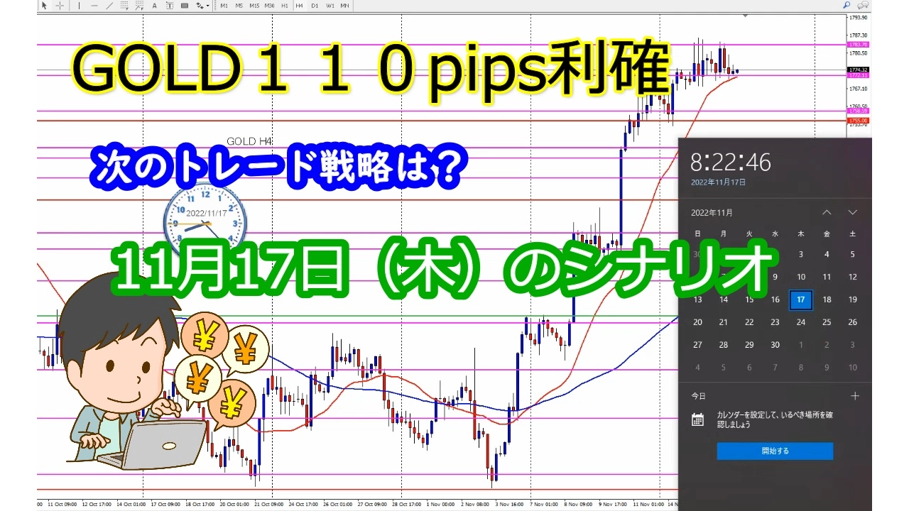 GOLD110pips利確、次のトレード戦略は? 2022.11.17(木)
