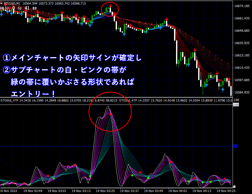※ 1分足用インジケーターとして説明しておりますが、当インジケーターは