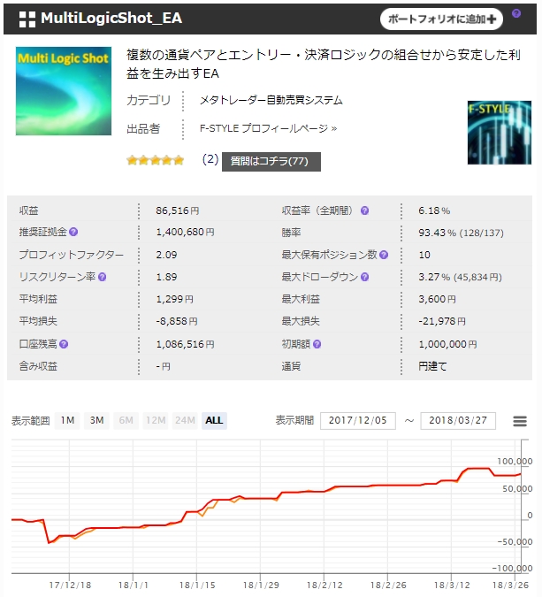 初期ロット0.1の場合は「0.6ロット」保有することになりますので推奨証拠金に注意してください。