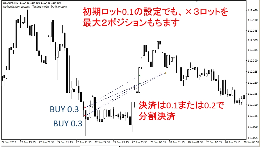 1回のエントリーのLot数は『設定Lot×3』となります。