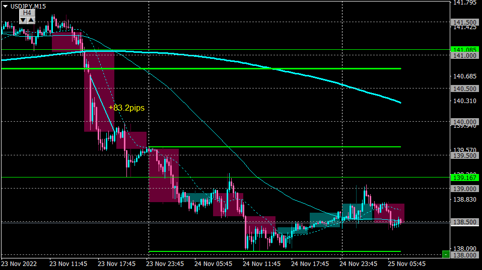 昨日は長期上昇トレンドの押し目候補が138.0~138.50にあり、有利な価格でショートができなかたのでノートレード。