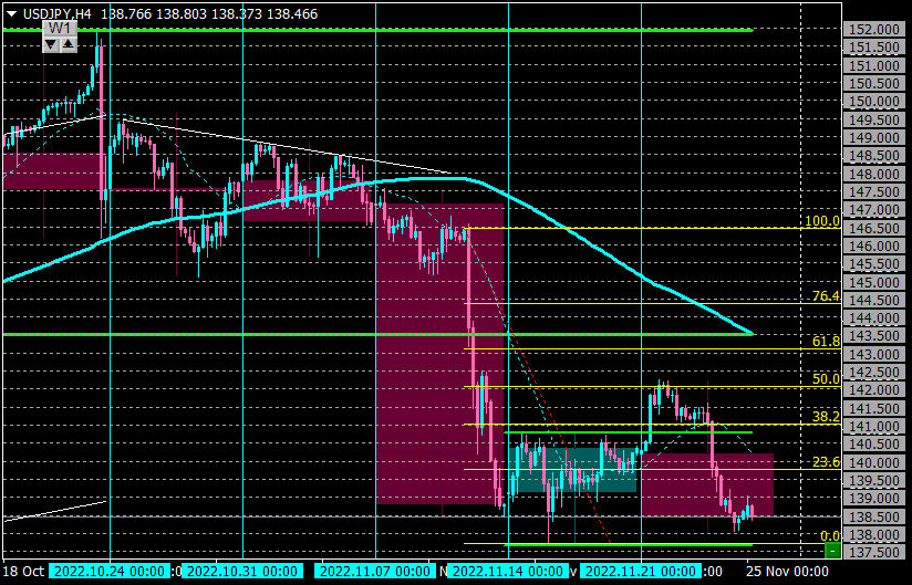 138.0を下抜けない限りは、底入れからのロングを狙いたい。