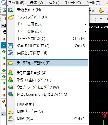 MT4を開いて左上のファイルから「データフォルダを開く」