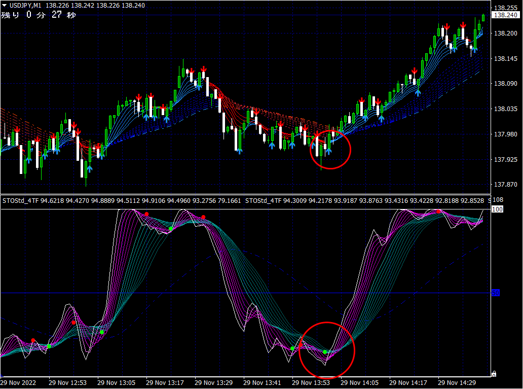 ※ 1分足用インジケーターとして説明しておりますが、当インジケーターは