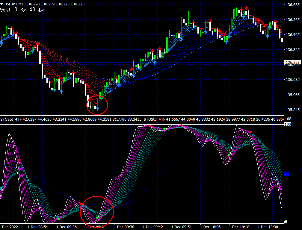 ※ 1分足用インジケーターとして説明しておりますが、当インジケーターは