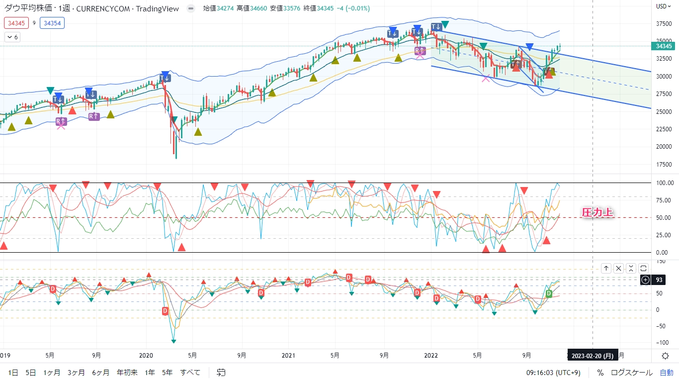 しばらく下落が進行するものと思われる。抜いた上昇チャネル内に回帰するか、リバースするか注視といったところか。