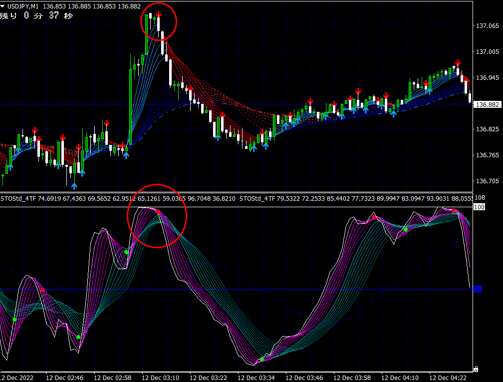 ※ 1分足用インジケーターとして説明しておりますが、当インジケーターは