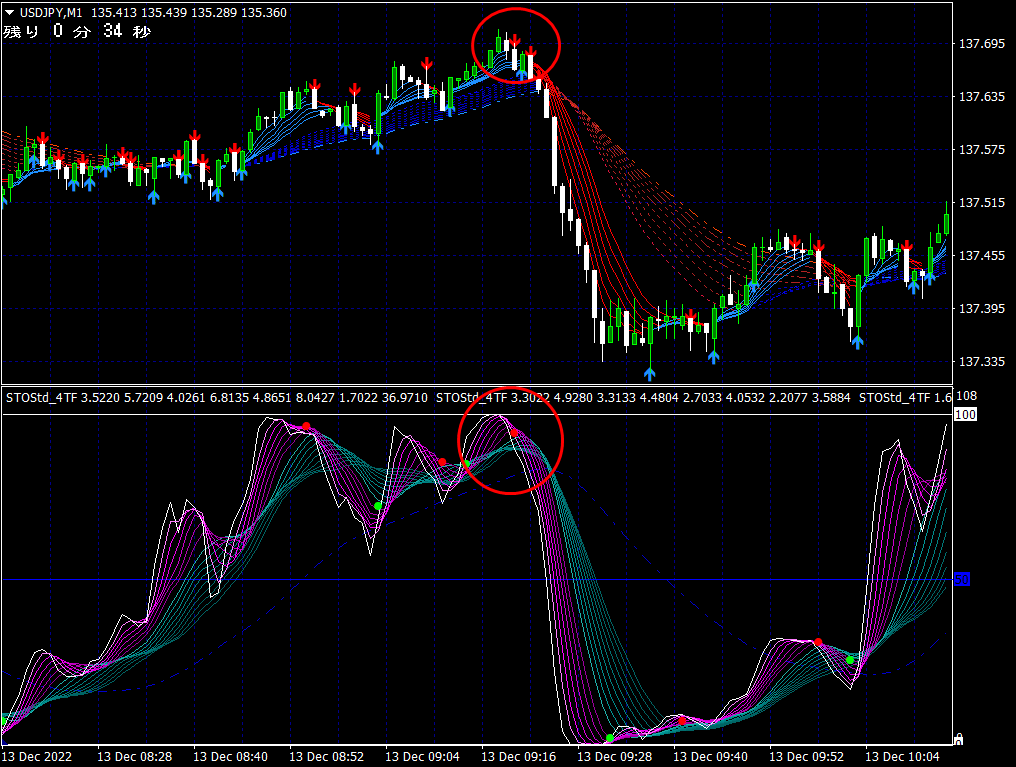 ※ 1分足用インジケーターとして説明しておりますが、当インジケーターは