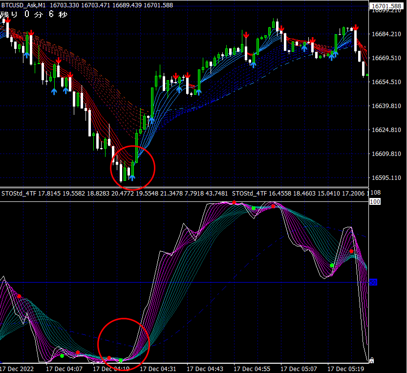 ※ 1分足用インジケーターとして説明しておりますが、当インジケーターは
