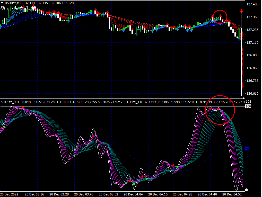 ※ 1分足用インジケーターとして説明しておりますが、当インジケーターは