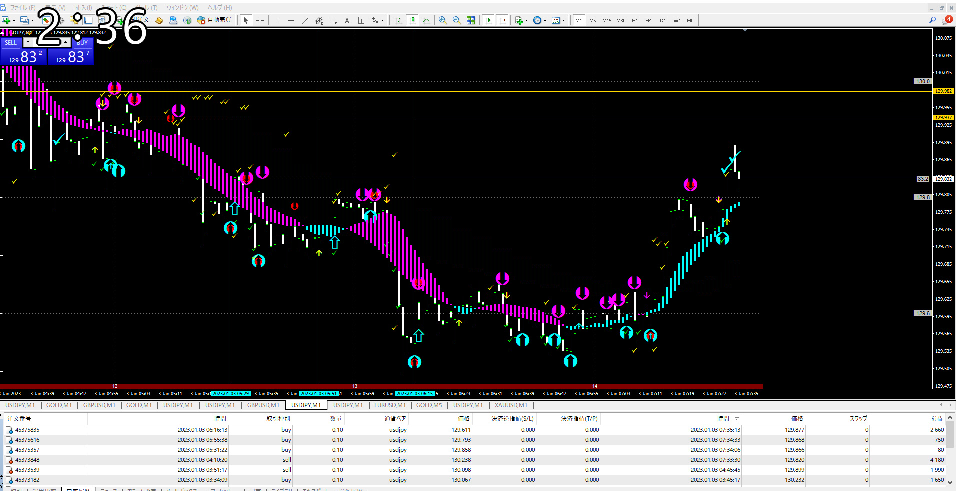 perfect signal プロトレーダー育成インジ 新年1月3日ドル円リアルトレードの全容動画
