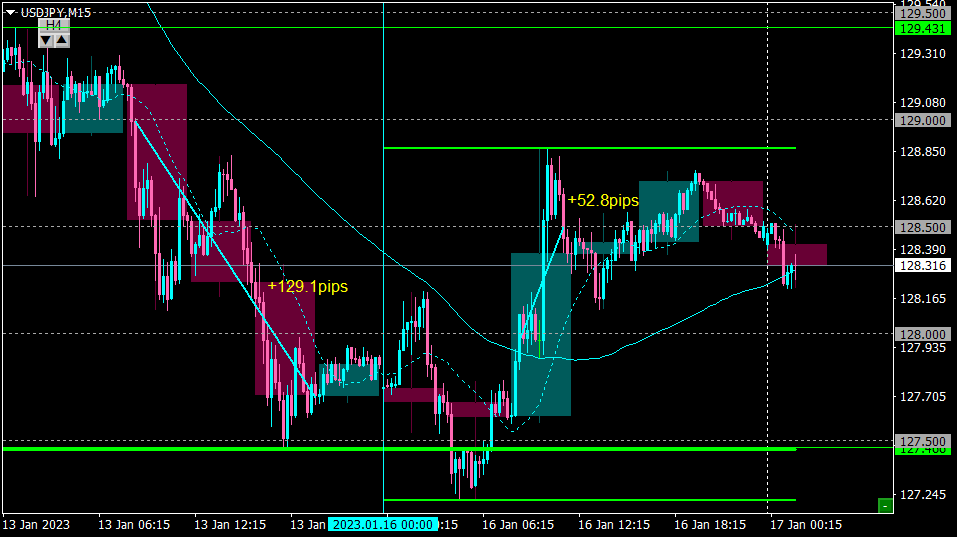 昨日は、週足安値127.50を若干下抜いたが、フェイクになる可能性を疑っていたのでしばらく様子見。