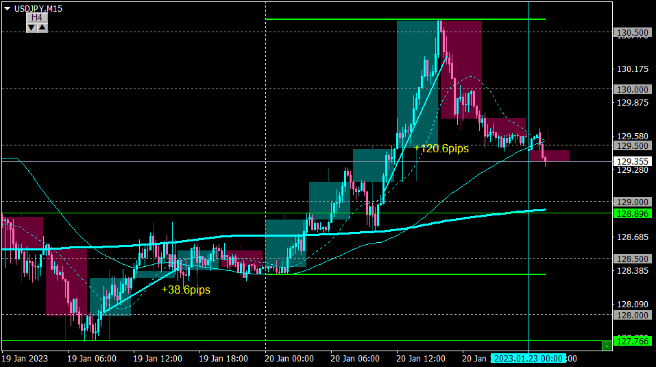 金曜は前日高値をH4の足が上抜いて上げダウ確定。