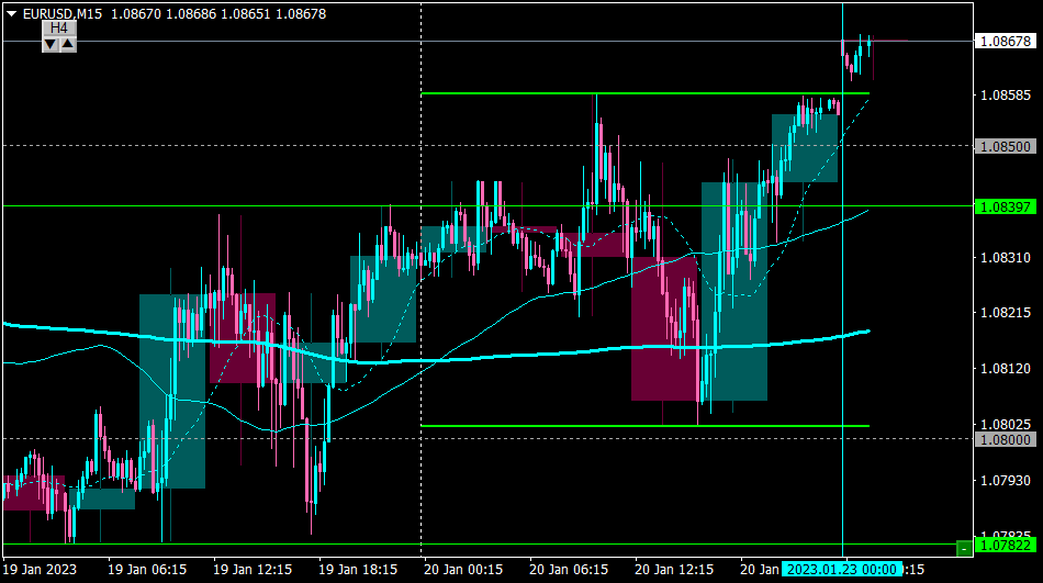 〇前日のトレード・USDJPY ドル円(15分足)昨日は先週安値141.50付近での値動きにとどまったためノートレード。・EURUSD ユーロドル(15分足)昨日は1.090付近でのプライスアクション