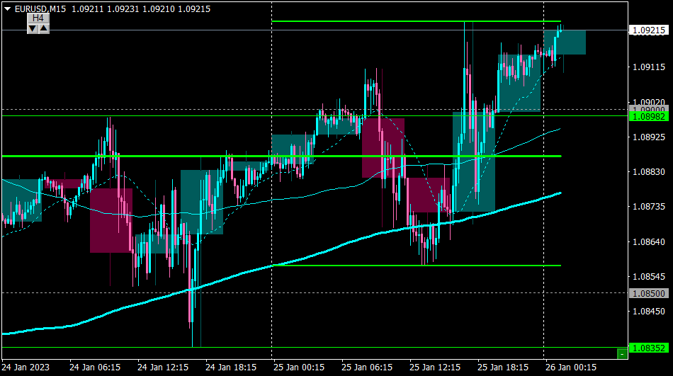 昨日は1.090でのプライスアクションに注目していたが、いったん上抜いたもののフェイクになり下落。