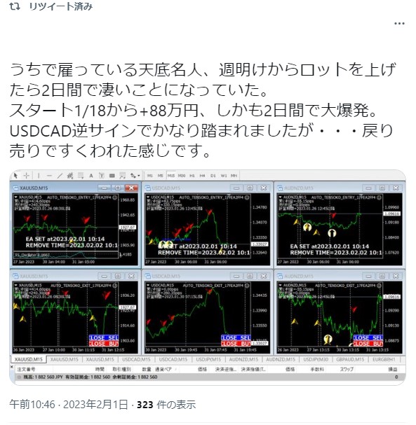 天底名人でリアルトレード運用を1月10日からはじめています。
