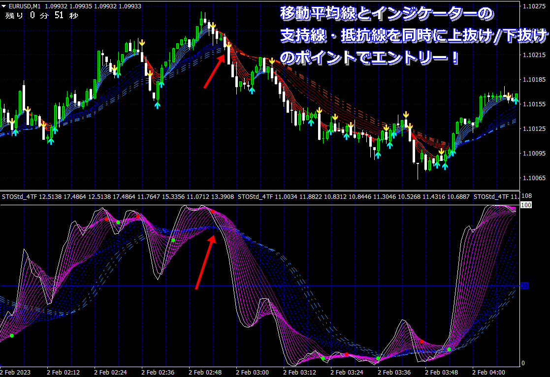 ほぼ同時に上抜け・下抜けのポイントでエントリー!