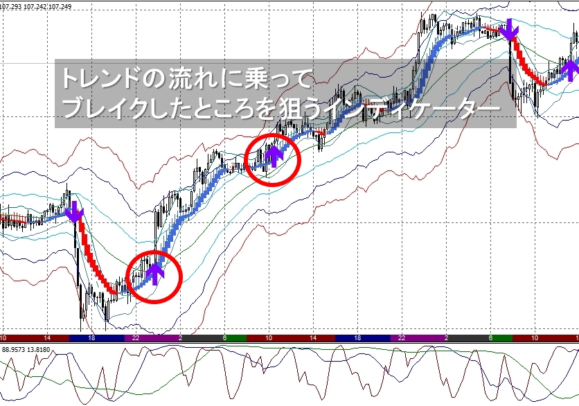 『トレンドの流れに乗ってブレイクしたところを狙うインディケータ』