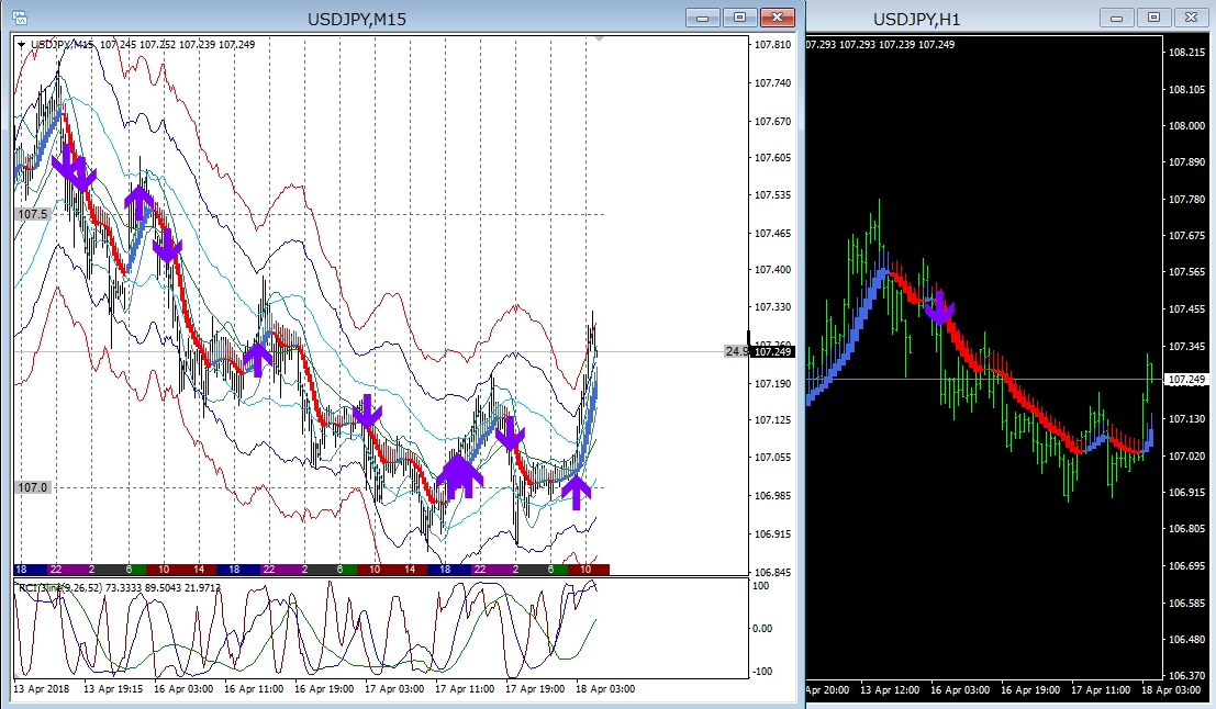 15分足と1時間足を同時に表示させて・・・