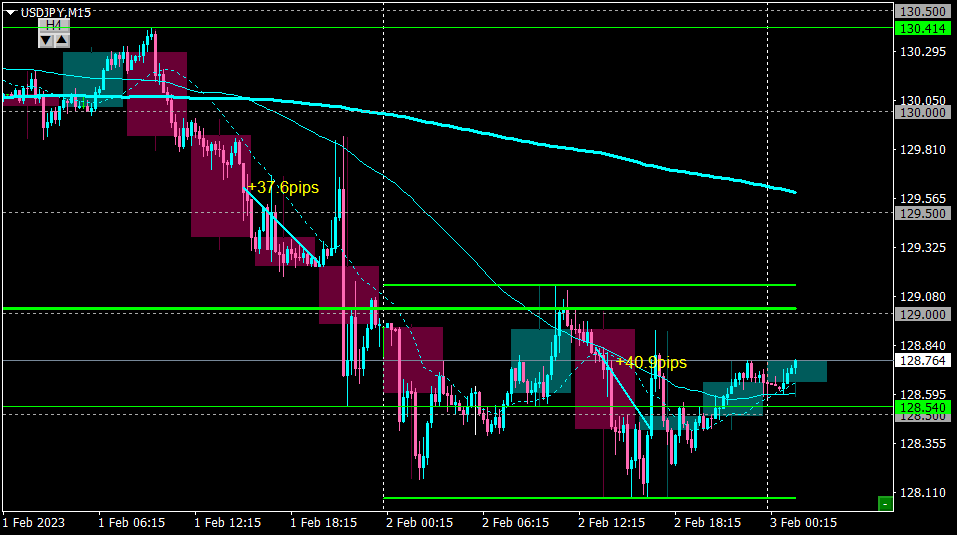 夜の指標発表前に反発を確認したのでイグジット。+40pips