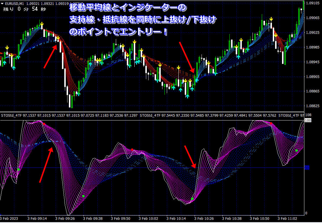 ほぼ同時に上抜け・下抜けのポイントでエントリー!