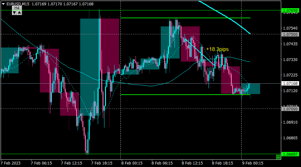 朝のシナリオ通りの展開で、マルチタイムフレーム分析ができていれば比較的容易なトレード。