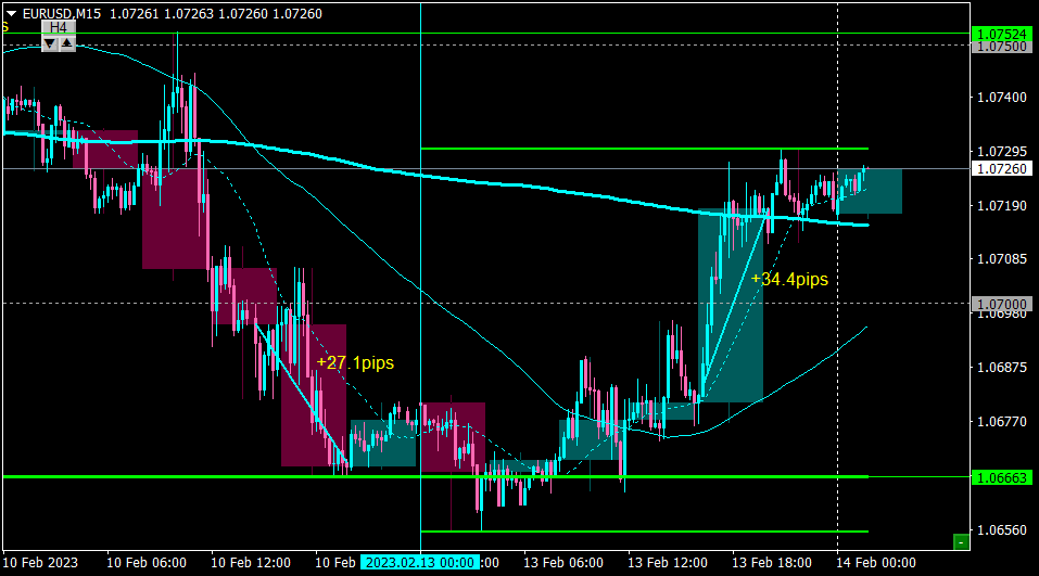 昨日はいっときだけ週足安値1.0666を割ったが、H4の足で支えられたため強いと判断。