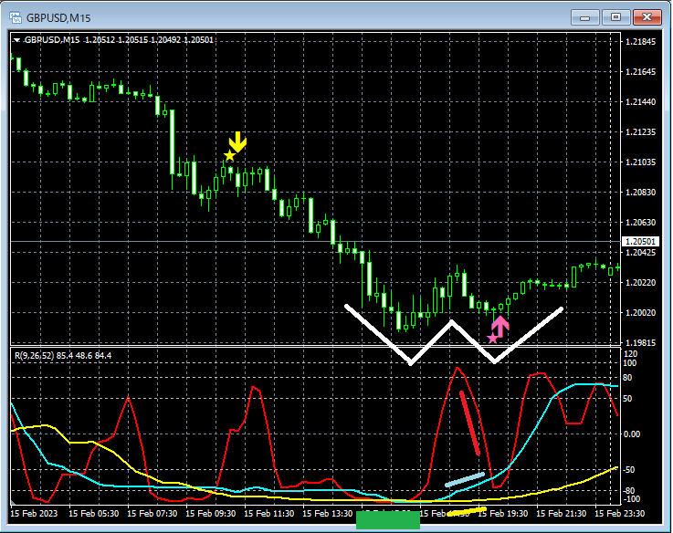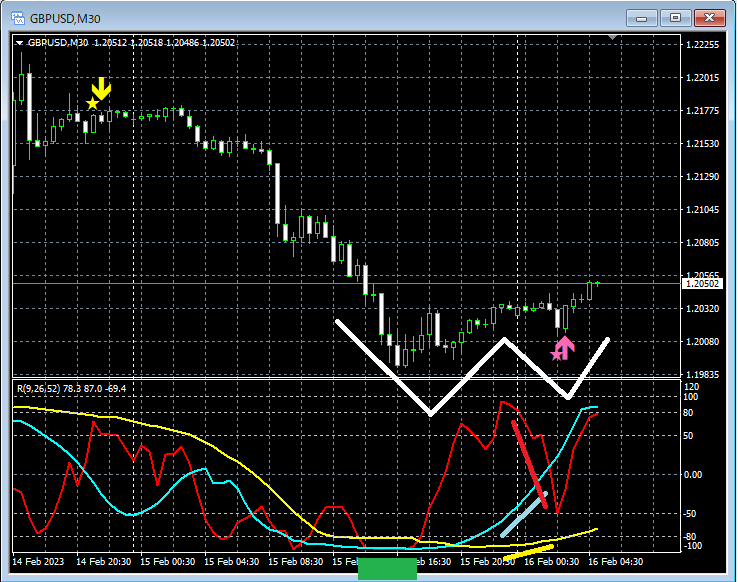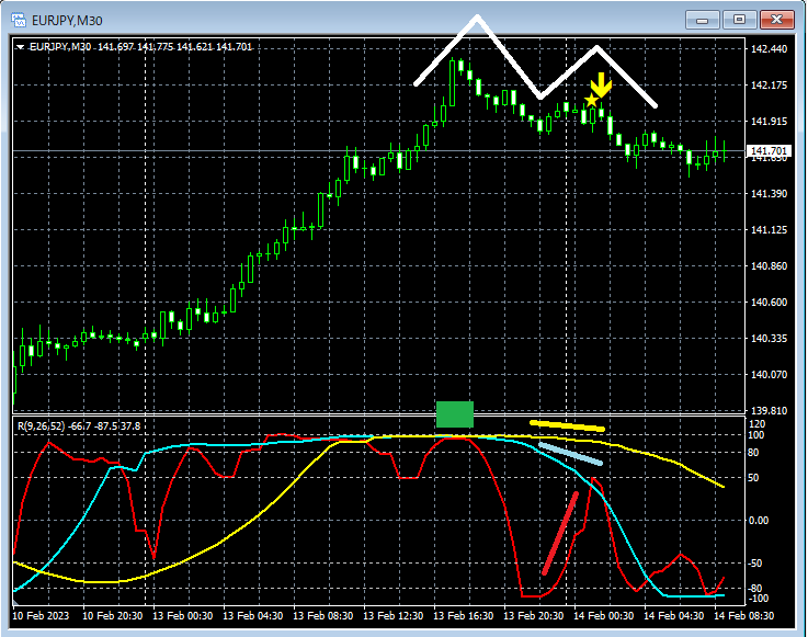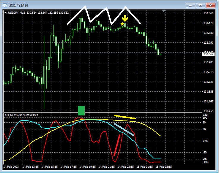 RCI3本ラインとダブルトップ・ダブルボトムとmBDSRのサイン(2023年2月13日~2月17日)
