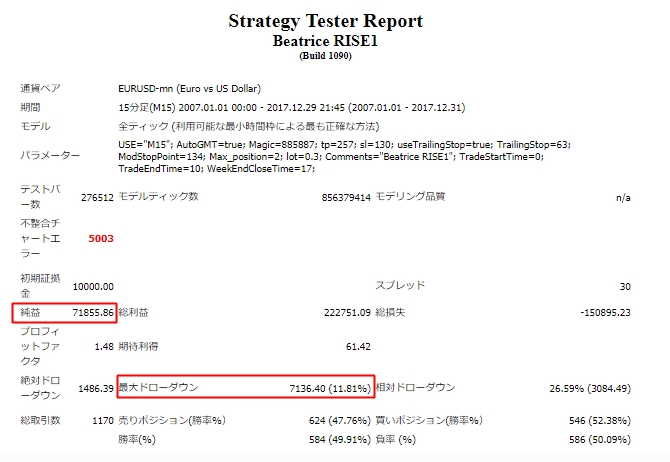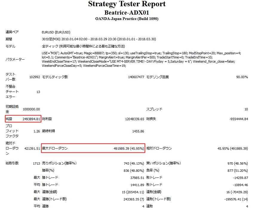 バックテストは設定するスプレッドやMT4のGMTなどにも影響されるので、参考程度にお考えください。